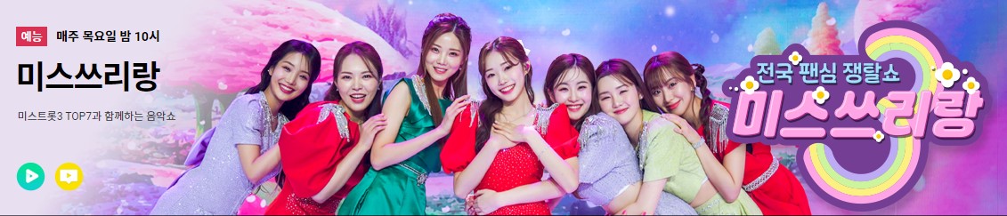 미스쓰리랑 신청곡 신청 방법을 알려드립니다. 미스쓰리랑에 신청곡을 신청하면 추첨을 통해 TOP7과의 영상통화와, 콘서트 티켓이 제공된다고 합니다.