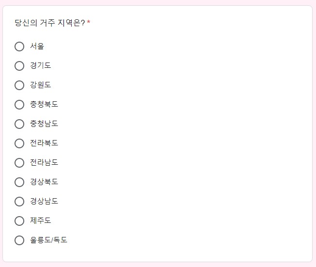 2) 거주 지역 선택