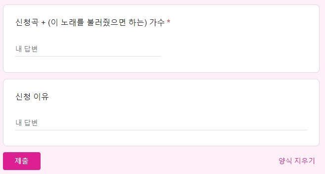 3) 신청곡과 노래를 불러줬으면 하는 가수(TOP7 중 1인), 신청 이유 작성 후 <제출>