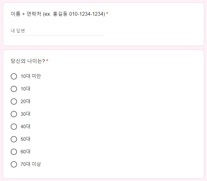 1) 이름과 연락처 기재, 연령대 선택